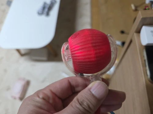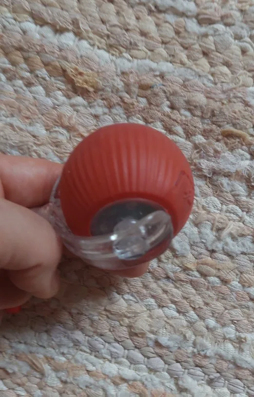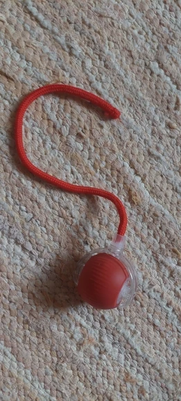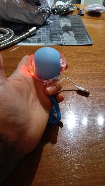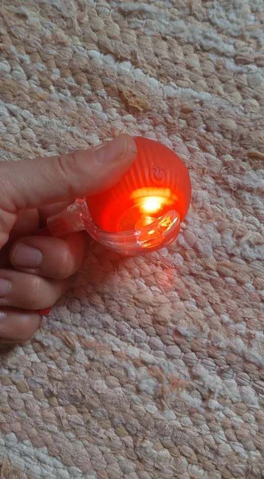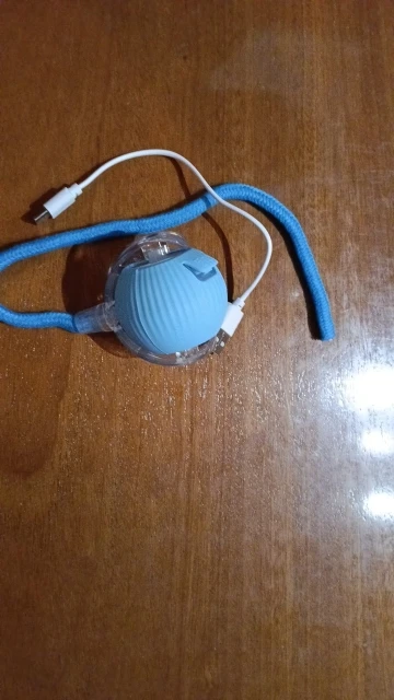 Nice toy. Charges via usb and has 2 light colors. It’s a bit noisy, so my cat is still afraid of it when it jumps — but it really makes me laugh.