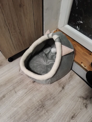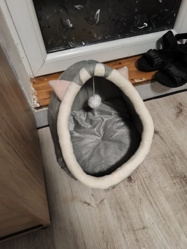 The cute cat-ear design and playful pompom toy add fun and comfort, while the detachable cushion makes cleaning effortless.